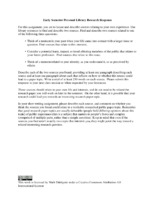 Early Semester Personal Library Research Response For this assignment, you are to locate and describe sources relating to your own experience. Use library resources to find and describe two sources. Find and describe two sources related to one of the following three questions ...