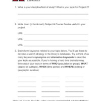Students will develop a topic and a list of terms in order to search databases effectively, efficiently, with confidence.